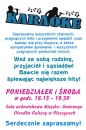 Miejsko-Gminny Ośrodek Kultury w Oleszycach zaprasza wszystkich chętnych, pragnących miło i przyjemnie spędzić czas bawiąc się przy muzyce, a także sympatyków śpiewania i wszystkich pragnących posłuchać innych, na KARAOKE w Sali Widowiskowej. Zabawa odbywać się będzie w każdy PONIEDZIAŁEK i ŚRODĘ w godz. 18.15 – 19.30.