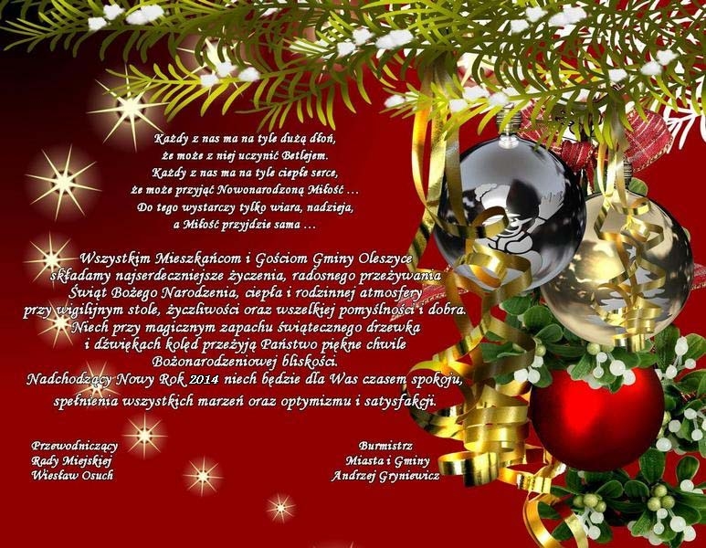 Najserdeczniejsze życzenia radosnego przeżywania Świąt Bożego Narodzenia...