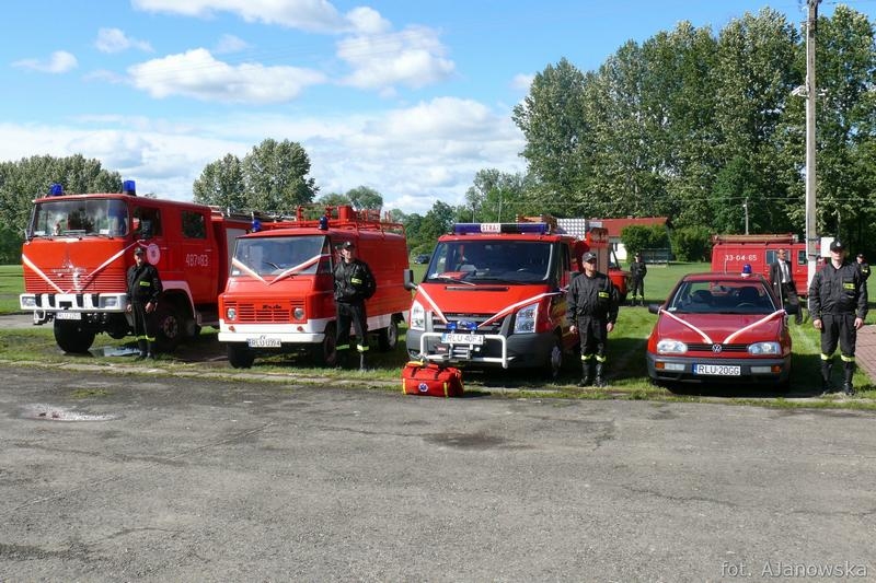 Dalsza część uroczystości odbywała się na stadionie sportowym, gdzie poświęcono i przekazano do użytkowania samochody pożarnicze. Dla OSP Oleszyce: samochód operacyjny VW Golf, ratownictwa technicznego FORD Transit wraz z torbą medyczną oraz samochód specjalny - drabina pożarnicza. Dla OSP Stare Oleszyce samochód ratowniczo - gaśniczy MAGIRUS, a dla jednostki z Borchowa lekki samochód ratowniczo - gaśniczy Żuk.