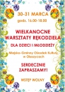 W dniach 30-31 marca odbędą się Wielkanocne Warsztaty Rękodzieła dla dzieci i młodzieży. Warsztaty odbywać się będą w świetlicy Miejsko- Gminnego Ośrodka Kultury w Oleszycach, w godz. 16.00- 18.00. Uczestnictwo w warsztatach jest bezpłatne.