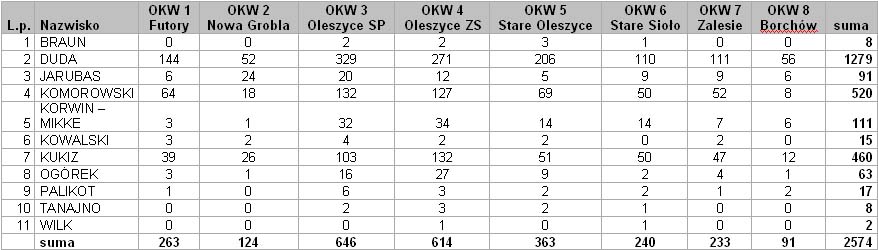 Wyniki głosowania w Wyborach Prezydenta RP w Gminie Oleszyce