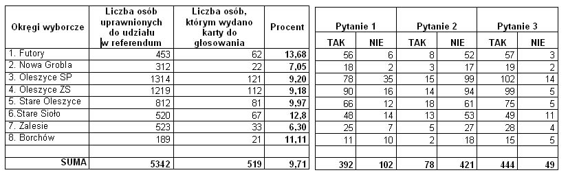 Wyniki głosowania w Referendum na terenie Gminy Oleszyce