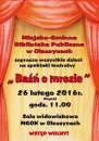 Miejsko- Gminna Biblioteka Publiczna w Oleszycach zaprasza wszystkie dzieci na spektakl "Baśń o mrozie" w wykonaniu Teatru Bazyl, który odbędzie się w piątek 26 lutego, o godz. 11.00 w sali widowiskowej MGOK w Oleszycach. Wstęp wolny.