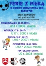 Serdecznie zapraszamy dzieci i rodziców na ferie z piłką, które odbędą się w dniach od 16.01.2017r. do 20.01.2017r., w Hali Widowisko-Sportowej w Oleszycach. Więcej informacji na plakacie!