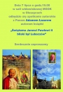 Spotkanie autorskie z Adamem Łazarem- byłym nauczycielem, regionalistą, historykiem i dziennikarzem, autorem albumu „Świętemu Janowi Pawłowi II bliski był Lubaczów”. W tej bogato ilustrowanej publikacji, autor szczegółowo opisuje pamiętną wizytę Ojca Świętego Jana Pawła II w Lubaczowie w dniach 2-3 czerwca 1991 roku, okoliczności, które doprowadziły do odwiedzenia Lubaczowa przez św. Jana Pawła II podczas jego IV pielgrzymki do Ojczyzny, jak i jej owoców.