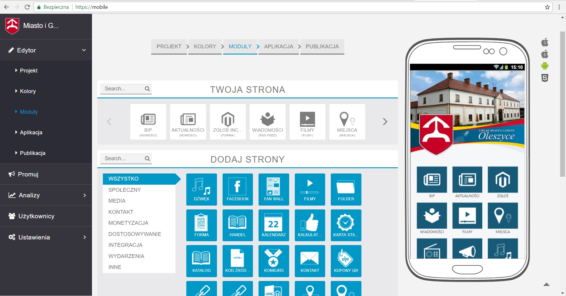 Jednym z elementów projektu jest innowacyjna Aplikacja Mobilna, sprzężona ze Stroną Internetową oraz Biuletynem Informacji Publicznej, posiadająca panel zarządzania, dzięki któremu możliwa jest dwustronna komunikacja z mieszkańcami. Szczegóły zostaną przedstawione na stronie internetowej po wdrożeniu opisanych e-usług.