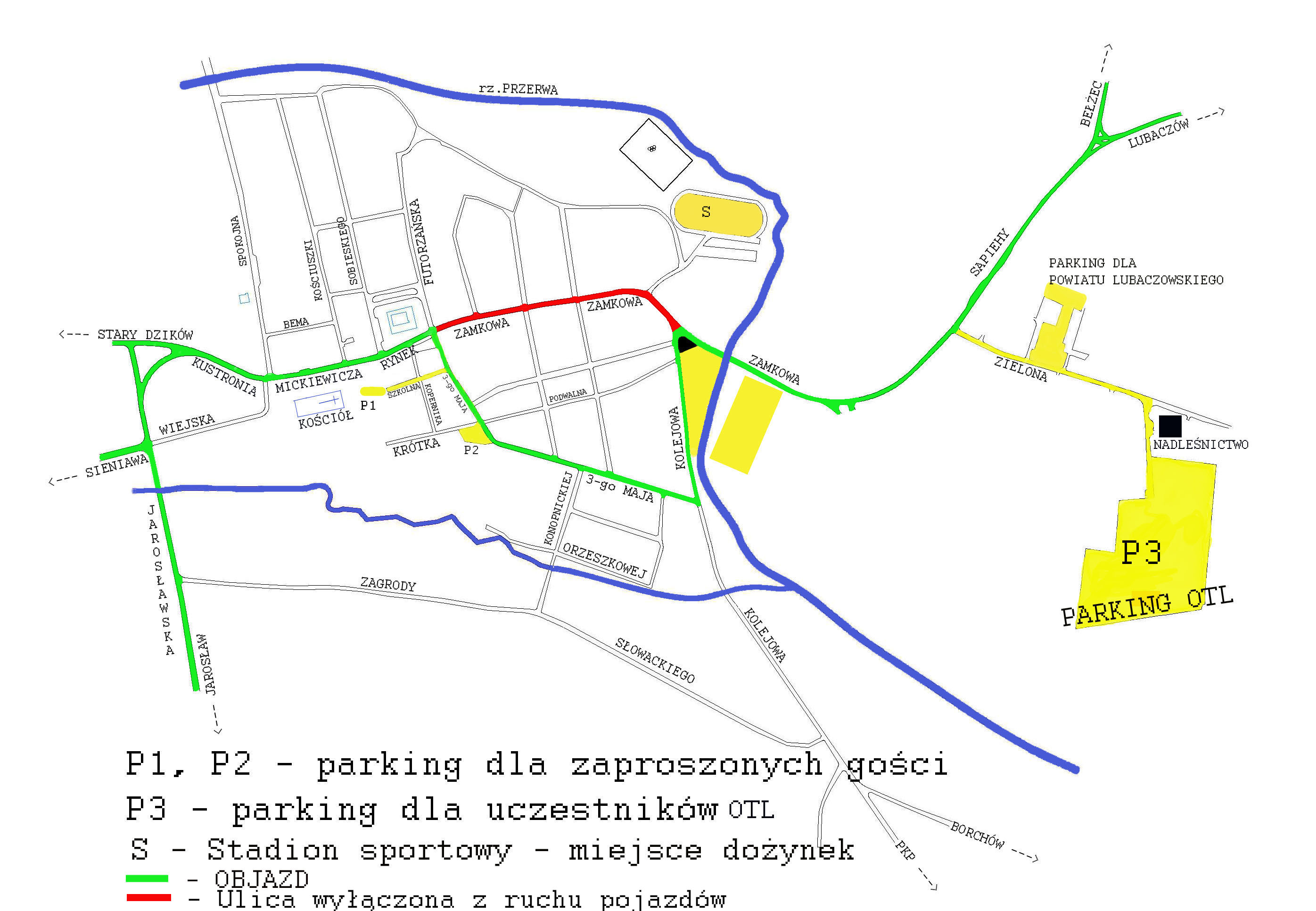 Na poniższej mapce pokazano plan miasta wraz z objazdem.
