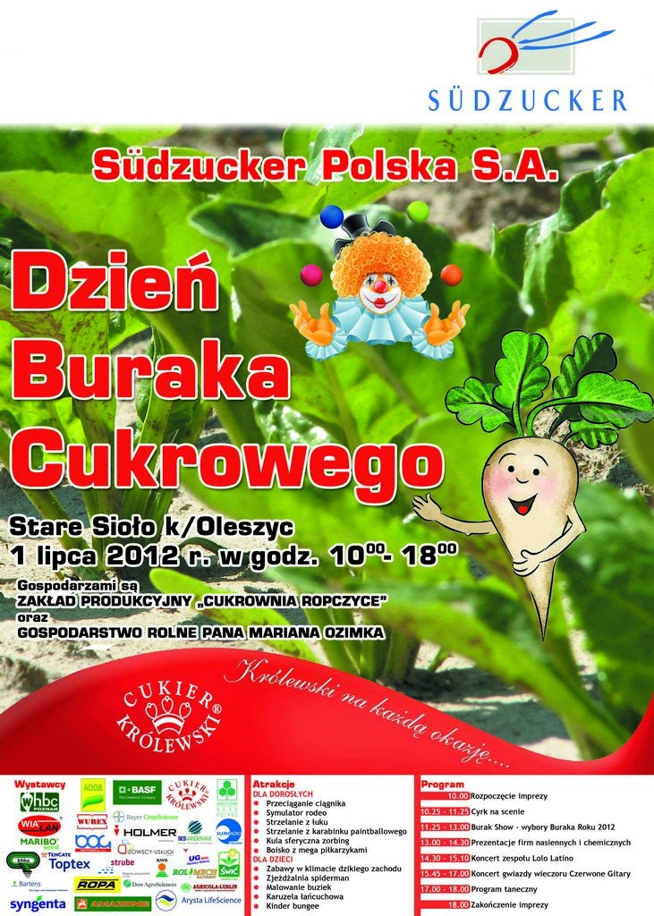 Burmistrz Miasta i Gminy Oleszyce zaprasza na Dzień Buraka Cukrowego, który odbędzie się Starym Siole dnia 1 lipca 2012 r. w godz. 10:00 do 18:00. Więcej informacji na plakacie.