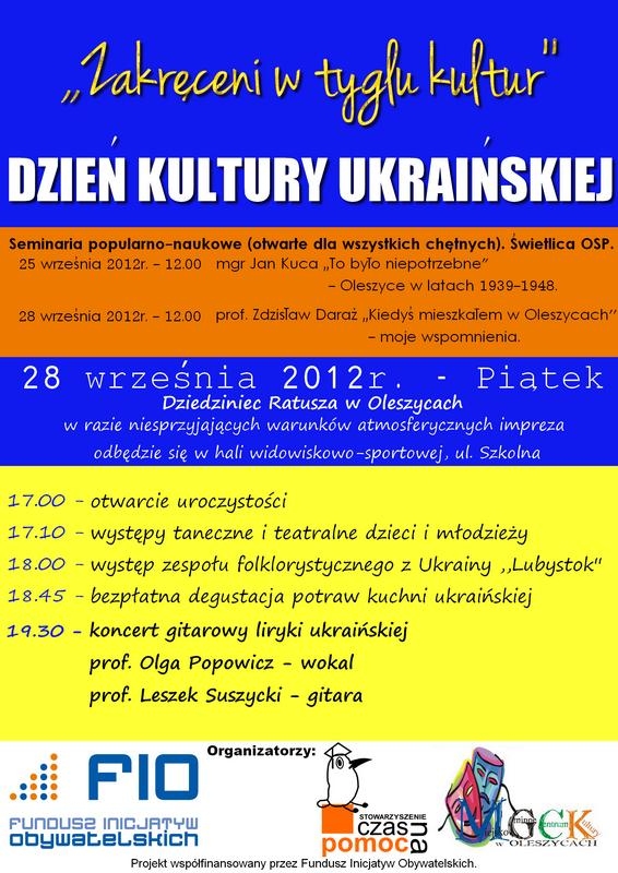 Burmistrz Miasta i Gminy Oleszyce zaprasza na Dzień Kultury Ukraińskiej, który odbędzie się 28 września na dziedzińcu Ratusza Miejskiego w Oleszycach. Rozpoczęcie uroczystości o godz. 17:00. Więcej informacji na plakacie.