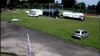 Widok z kamery na boisko na stadionie sportowym w Oleszycach.